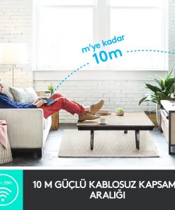 10 metreye kadar bağlantı mesafesi bulunan Logitech K400 Plus Touch kablosuz klavye, konforlu ve hızlı kontrollere ev sahipliği yapar. Büyük televizyon ekranında eğlenceli anlar yaşamanızı sağlayan ürün, kolay ulaşılabilir ses kontrolleri ve ok tuşu düzeni sunar.