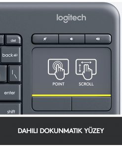 Logitech K400 Plus Touch kablosuz klavye, siyah rengi ile her cihaza uyum sağlar. Dahili geniş dokunmatik yüzeyi, tüm denetimleri bir araya toplar. Bu kompakt klavye, karmaşayı minimuma indirir. Rahat bir kontrol için tasarlanan ürün, sessiz tuşları sayesinde eğlenceli anlar yaşatır.
