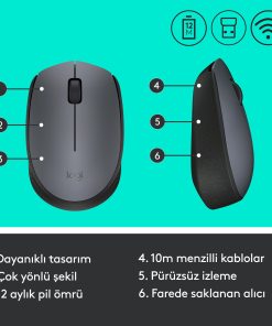 Logitech M170 USB Alıcılı Kablosuz Mouse – Gri