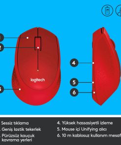 Logitech M330 Sessiz Kablosuz Optik Mouse – Kırmızı