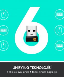 - Sabit Unifying USB alıcı sayesinde güçlü ve güvenilir bağlantı 10 metreye kadar kablosuz özgürlük sunar. macOS ve Windows ile uyumludur. Ayrıca Works with Chromebook onaylı bir üründür.