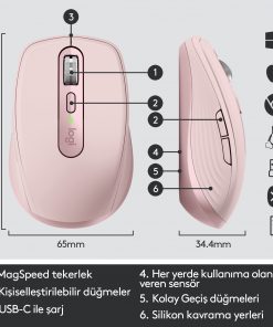 Logitech MX Anywhere 3 Kompakt Kablosuz Mouse – Pembe Özellikleri