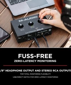 Mükemmel gitar partisyonundan, bir sonraki podcastiniz için ses kayıdı almaya iyi bir sonuç almak istiyorsanız güvenebileceğiniz bir ses kartına ihtiyacınız vardır. Karşınızda M-Audio Solo – Herhangi bir Mac veya PC bilgisayarda 2 kanal 48 kHz ses kayıdı olmanızı sağlayan, taşınabilir ses kartı sınıfının en iyisi!