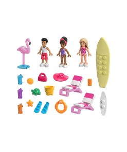 - 317 blok, 3 adet birleştirilebilir Barbie mini bebek, 2 evcil hayvan, moda ve plaj aksesuarları içerir