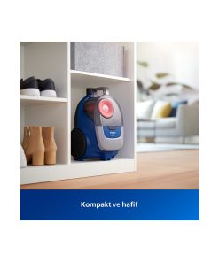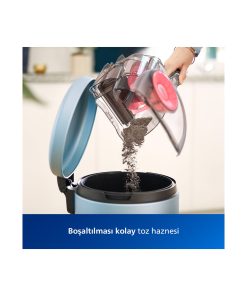 Küçük ve hafif tasarımı sayesinde süpürgeyi kaldırmak ve taşımak çok kolay.