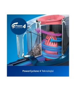 PowerCyclone 4 teknolojisi, tozu havadan etkili bir şekilde ayırmak ve daha uzun süre ve daha fazla güç sağlamak için silindirik haznedeki hava akışını hızlandırır.