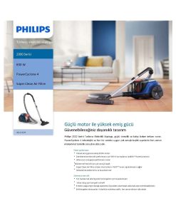 Philips 2000 Serisi Torbasız Elektrikli Süpürge, güçlü temizlik ve kolay bakım imkanı sunar. PowerCyclone 4 teknolojisi ve her tür zemine uygun Çok amaçlı başlık sayesinde her zaman mükemmel temizlik sonuçları elde edin.