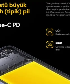 - – 5000-6000 mAh aralığındaki batarya kapasitesi ile uzun süreli kullanım imkanı sunarak gün boyu şarj derdi olmadan telefonunuzu kullanın