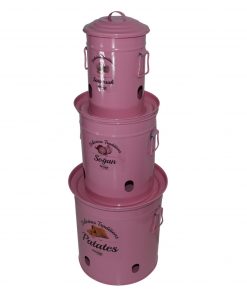Saklama Kabı Erzak Bakliyat Kutusu Metal Set Patates Soğan Sarımsak Saklama Kabı Pembe