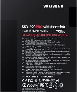 Samsung 990 PRO Heatsink M.2 NVMe SSD (MZ-V9P1T0CW), 1 TB, PCIe 4.0, 7.450 MB/s okuma, 6.900 MB/s yazma, soğutuculu SSD ve RGB ışıklı konsol, oyun ve video düzenleme için ean : 8806094413748