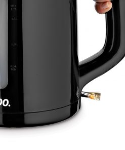 1.7 L’lik plastik ısıtıcına ve 0.9 L’lik cam demliğe sahiptir.