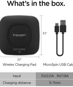 Spigen Hızlı Kablosuz Şarj Cihazı Essential F301W 9W (QI Sertifikalı Tüm Cihazlar ile Uyumlu)