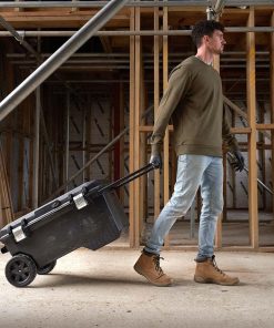 Stanley FATMAX™ ST194850 Tekerlekli Takım Çantası Stanley FATMAX™ ST194850 Tekerlekli Takım Çantası IP54 sınıfında Suya, toza ve darbeye karşı tam koruma sayesinde geniş kullanım alanı, Sağlam ve dayanıklı plastik gövde ile uzun süre kullanım imkânı Kabartmalı özel plastik gövde ile sağlam ve dayanıklı yapı, Aletler ve aksesuarlar için çıkarılabilir tepsi ve geniş depolama alanı, Paslanmaya dayanıklı metal kilitler sayesinde uzun süre kullanım imkânı, Özel tasarım Geometrik metal kilit tam ve düzgün kapanma sağlar, Malzemelerinizi güvenle saklamak için asma kilit takma imkânı, Kapağa entegre kilit sayesinde güvenli kullanım imkânı, Teleskopik metal uzun tutma kolu ve büyük tekerlekleri sayesinde tüm alanlarda kolay taşıma ve üstün manevra kabiliyeti sağlar, Ahşap, boru vb. ürünlerin kesiminde kapağın üst kısmındaki entegre V-oluk bölmesini kullanma imkânı, Şantiye, garaj, atölye, tamirhane vb. tüm alanlarda kolay kullanım sağlar, En zorlu koşullarda bile güvenle kullanım imkânı, Maksimum direnç ve en yüksek güvenli taşıma için özel üretilmiştir, 113 litre hacim ve 50 Kg taşıma kapasite ile geniş kullanım imkânı En zorlu koşullarda bile güvenle kullanım imkânı, Maksimum direnç ve en yüksek güvenli taşıma için özel üretilmiştir, GÖRSELDE YER ALAN ALETLER ÜRÜN İÇERİĞİNDE YER ALMAMAKTADIR, Ölçüleri 910x520x440mm