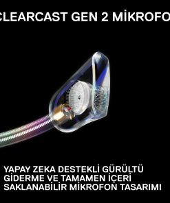 - Yapay Zeka Destekli Gürültü Giderici Mikrofon – ClearCast Gen 2 mikrofon Sonar Yazılımının güçlü yapay zeka algoritmalarından destek alarak arka plan gürültüsünü susturur ve net iletişim imkanı sunar, mikrofon aynı zamanda daha şık bir görünüm için kulak pedine tamamen geri çekilir