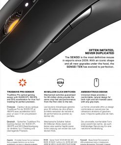 Uzun zamandır oyun farelerinin kralı olarak bilinen SteelSeries Sensei, ikonik şekli ve performansı ile oyun fareleri dünyasına yön verdi. Beğenilen şekil ve yepyeni yükseltmelerle Sensei Ten, mükemmele ulaştı.