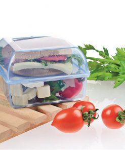 İster çocuğunuzun okul çantasında, isterseniz piknik sepetinde… Üç farklı bölmesi ile meyveler bir tarafa, sandviç bir tarafa. Bölmelerden bir tanesi standart küçük meyve suyu kutusu ölçülerine göre tasarlanmıştır. Bu sayede meyve suyunun ya da sütün ambalajı gıda maddeleri ile temas etmez. Kilit sistemi son derece kolay bir kullanım imkânı verir.