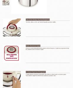 Akıllı zamanlayıcılı düdüklü tencere kapağı sayesinde lezzetli yemekler yapmak artık hiç zor değil. Doğru zamana ulaştığınızda geri sayım otomatik olarak başlar ve yemeğiniz hazır olduğunda sesli uyarı sistemi ile size haber verir. Alarm çaldığında lezzetli yemekler yemeye hazır olun…