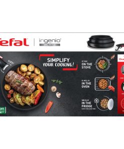 Yer kazandıran iç içe geçen tasarım, buzdolabına girebilen* ve ister ocakta ister fırında pişirebileceğin tarifler için tek ihtiyacın olan Tefal Ingenio.