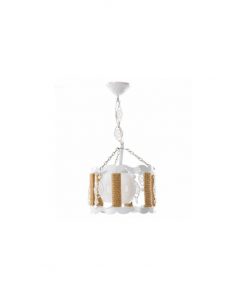 • Metal Elektrostatik boyalı gövde üzeri Jüt halat sarılı opal Beyaz parlak camlı üzeri tuğra süslü avize