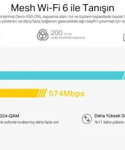 TP-LINK DECO X50-DSL 574MBPS-2402MBPS KABLOSUZ-AX Wi-Fi 6 4 PORT VDSL MODEM