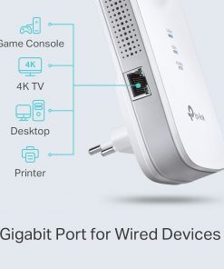 Gigabit Ethernet bağlantı noktası, genişleticiyi kablosuz bir köprüye dönüştürür ve Wi-Fi ağınıza Blu-ray oynatıcı, oyun konsolu, DVR veya akıllı TV gibi kablolu bir cihazı bağlamanızı sağlar.