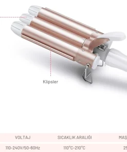 - 25 mm saç maşası 210 derece maksimum sıcaklıkta çalışır. Saçlarınızın daha hacimli olmasına olanak tanır.