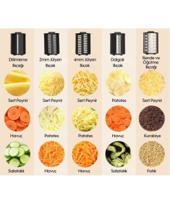 Jülyen Doğrama Aparatı(Kalın) Jülyen Doğrama Aparatı(İnce) Dilimleme Aparatı Öğütme ve Rende Aparatı Dalgalı Doğrama Aparatı
